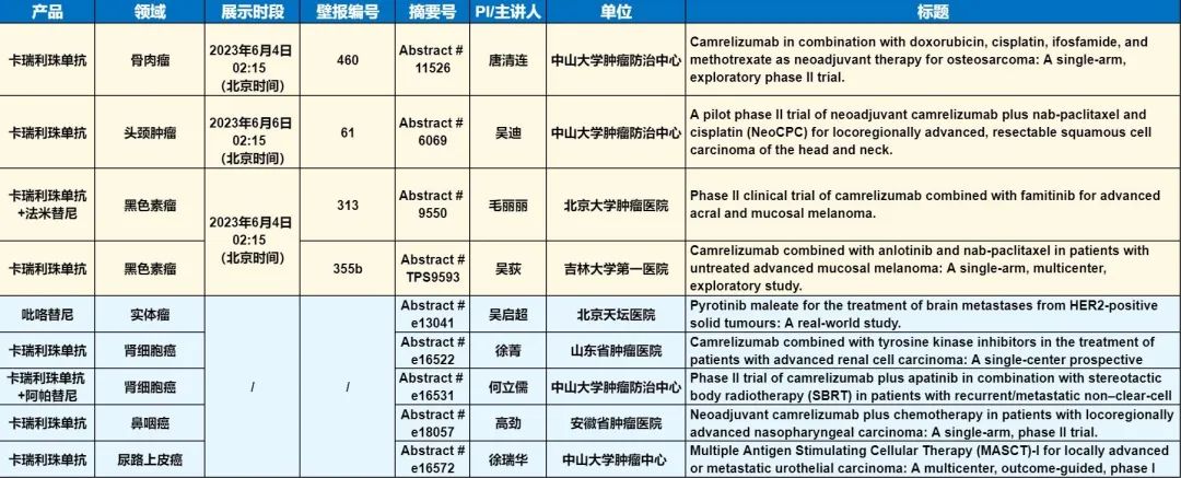 此外,在头颈肿瘤、黑色素瘤、骨肉瘤、鼻咽癌、肾细胞癌、尿路上皮癌等多个领域,卡瑞利珠单抗、吡咯替尼等产品相关研究一共入选了4项壁报展示和5项线上发表,彰显了EVO医药强大的自主研发综合实力。
